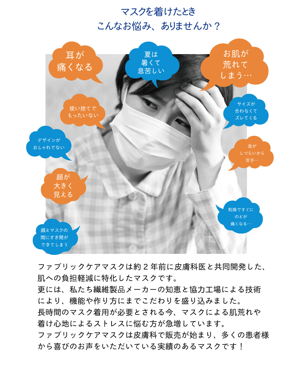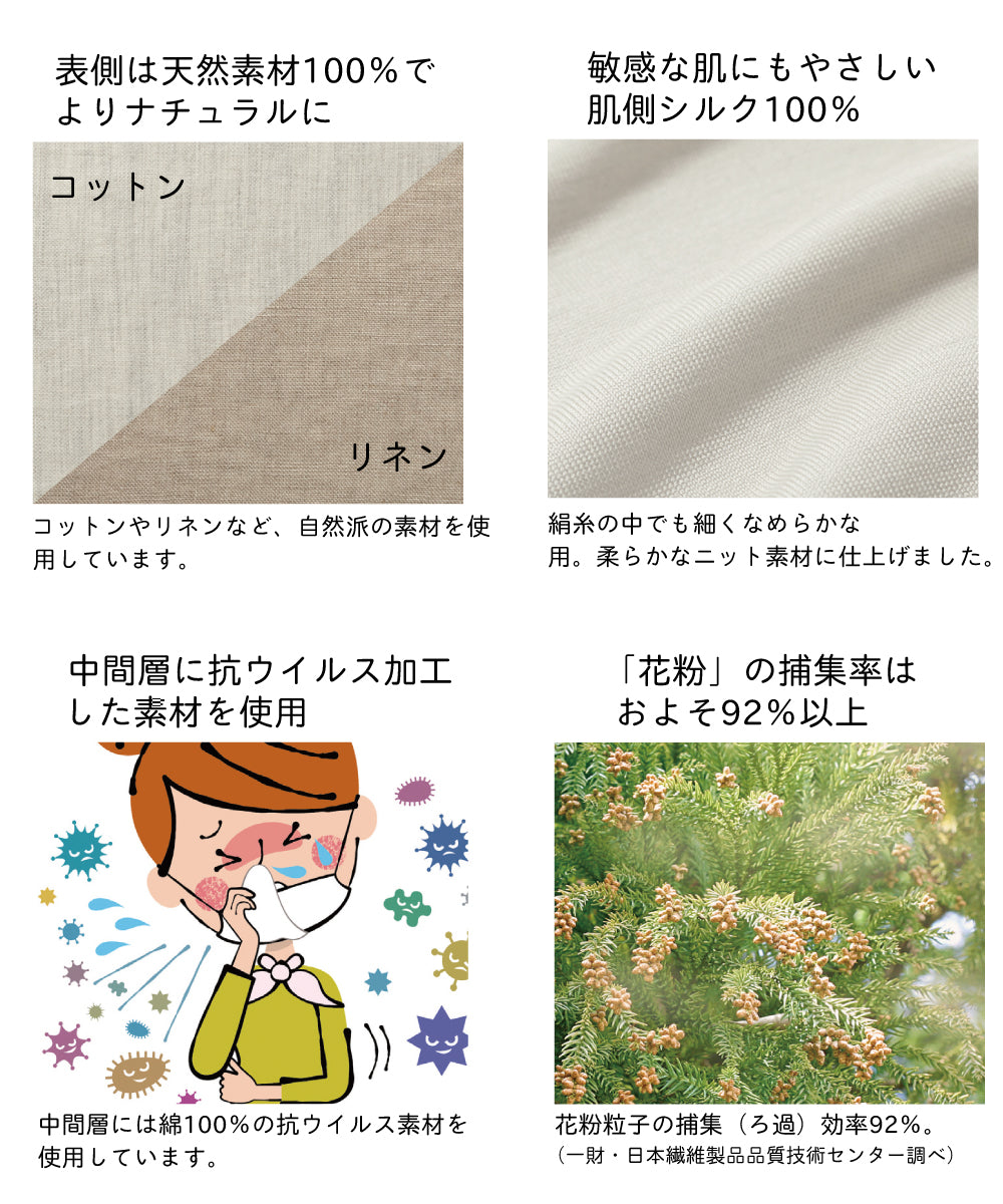 Based on customer feedback regarding skin irritation and rashes while wearing masks, We developed a mask made of "silk," a natural fiber that is closest to human skin, under the supervision of a doctor.