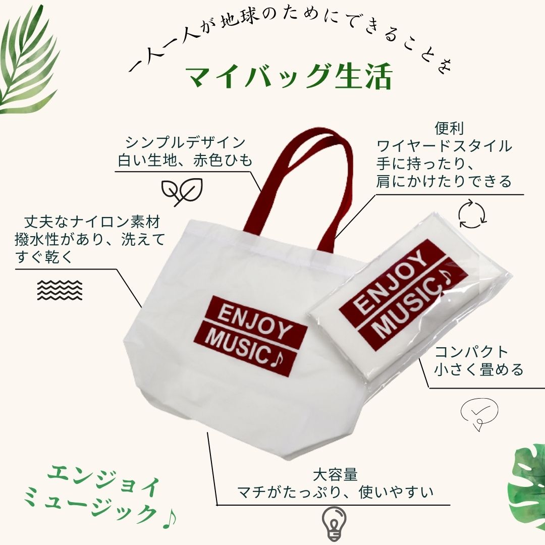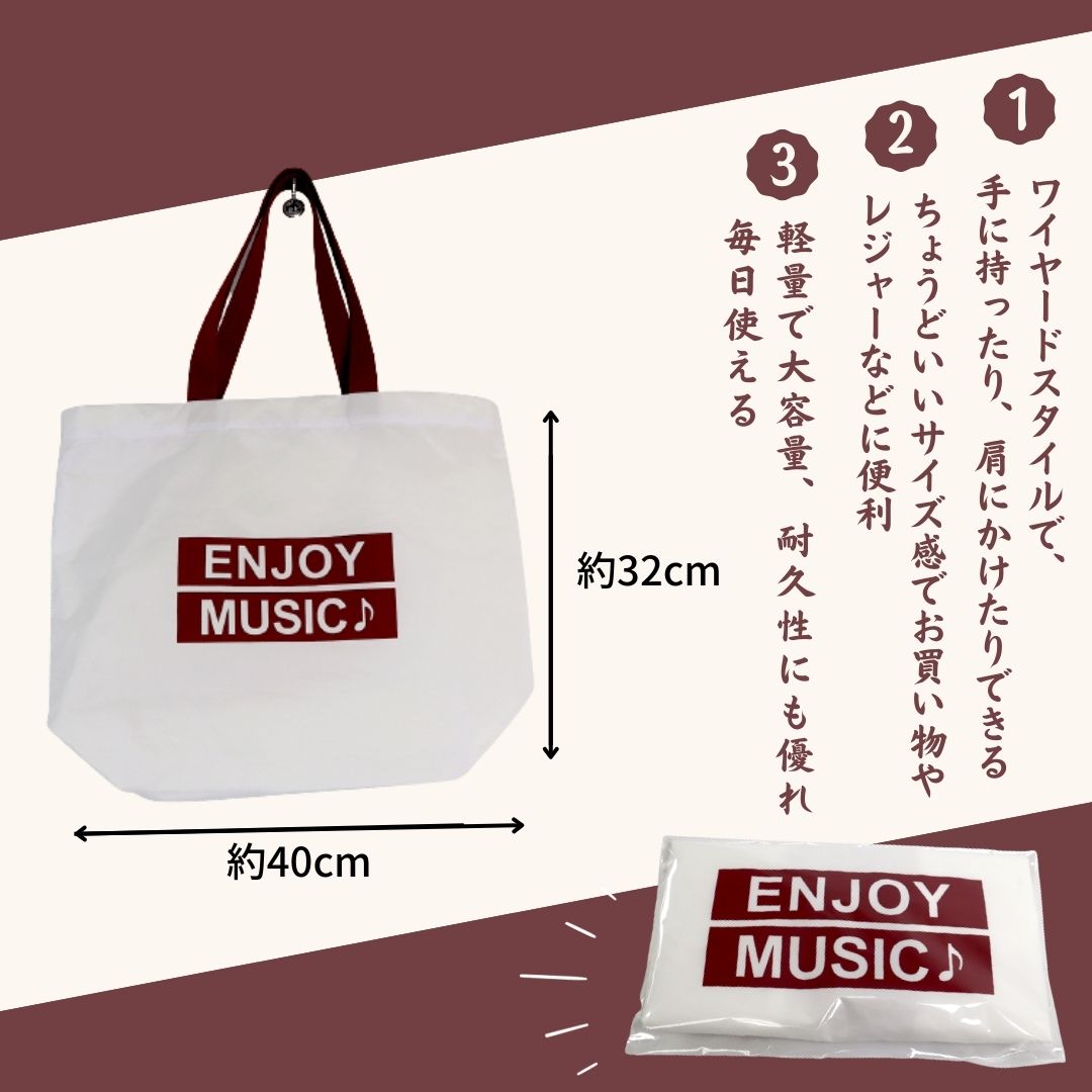 This eco-bag has the words "ENJOY MUSIC♪" written on it.